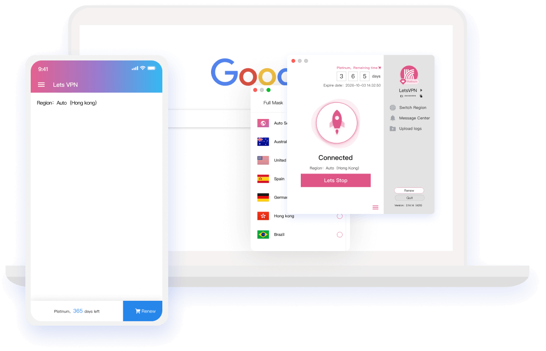 LetsVPN supports all mainstream devices on the market. You can share members among multiple devices with just one account, and support multiple devices online at the same time.